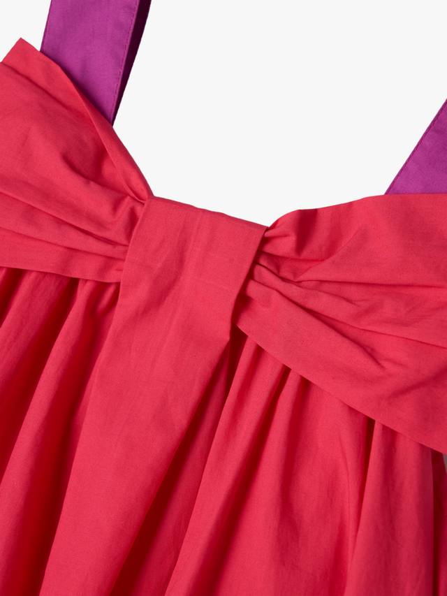 Усильте эффект кружения в этом свободном платье из удобного хлопка. Оно украшено эффектным большим бантом и отличается ярким цветом. Попробуйте!