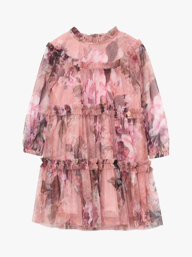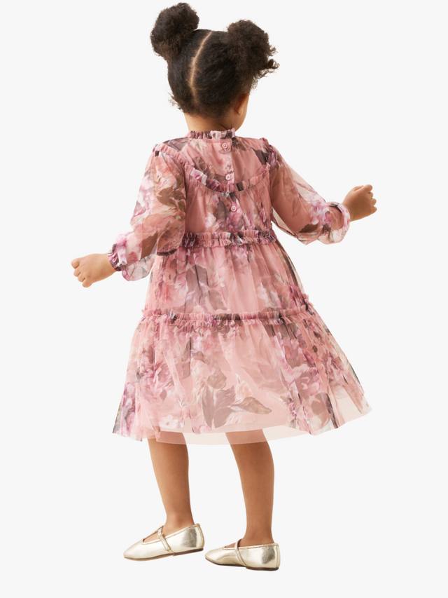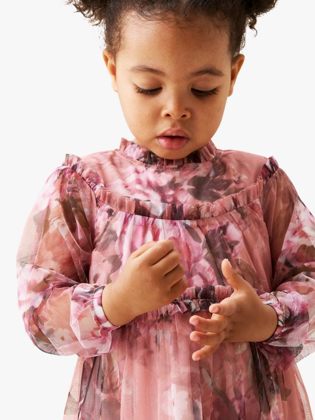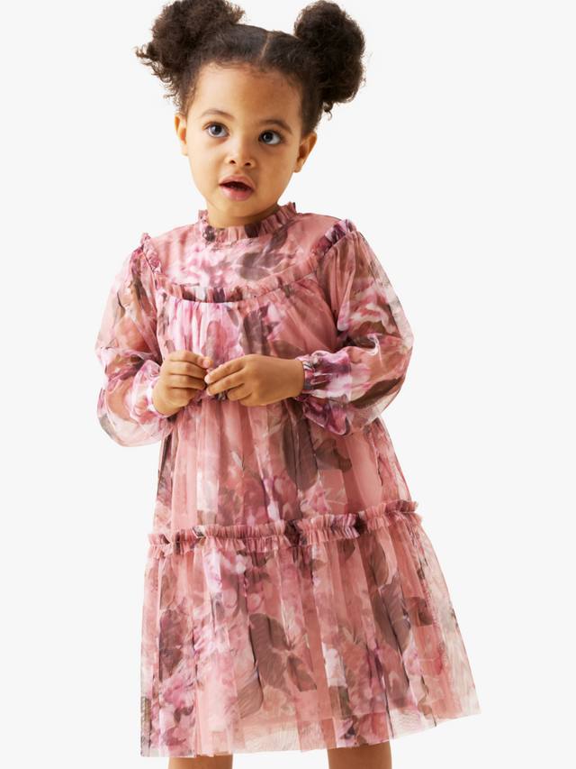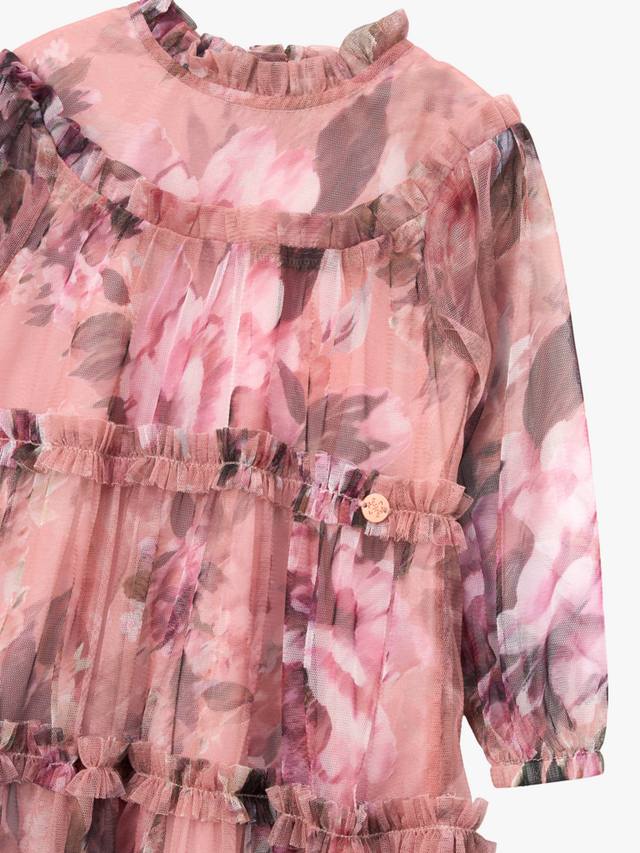 Прекрасные крупные цветы в приглушенно-розовых тонах, напечатанные на мечтательной прозрачной сетчатой ткани с мягкими ярусами и потрясающим широким силуэтом. Изделие с круглым вырезом и длинными рукавами.