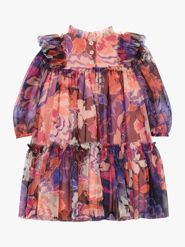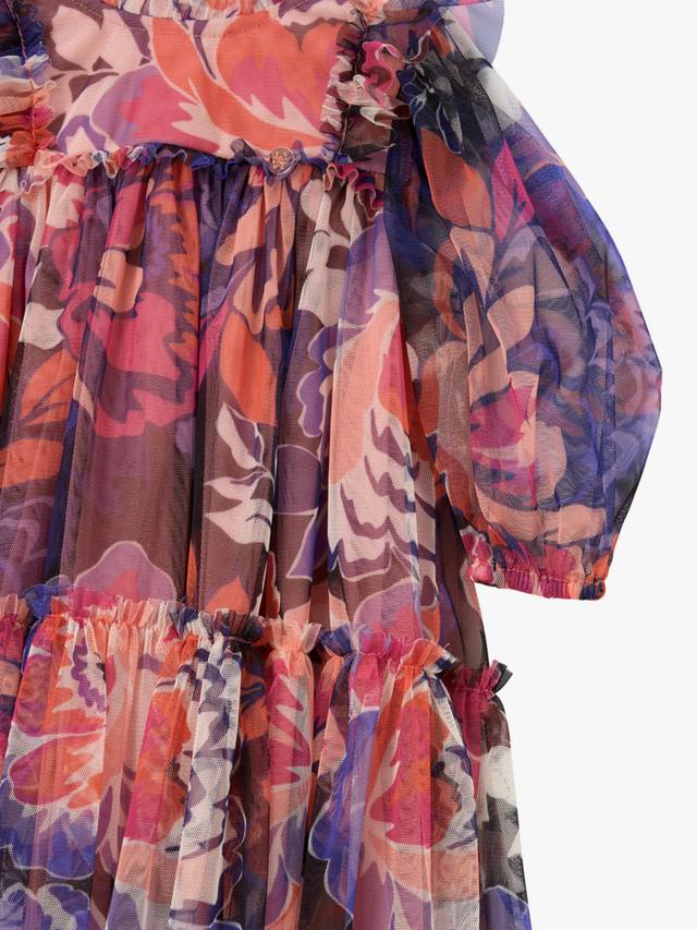 Прекрасные крупные цветы в насыщенной бордовой цветовой гамме, напечатанные на мечтательной прозрачной сетчатой ткани с мягкими ярусами и потрясающим широким силуэтом. Это изделие от Angel & Rocket с высоким воротником-стойкой, длинными рукавами и застежкой на пуговицы сзади.