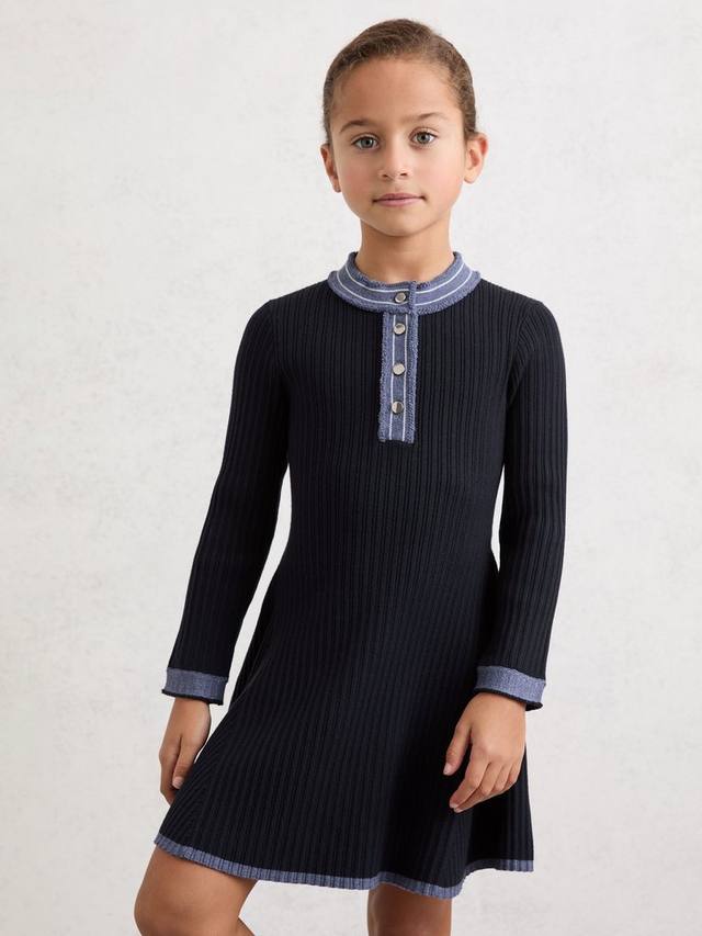 Изящное платье в рубчик с современным кроем, созданное для комфорта. Благодаря тонкой полосатой отделке и текстурированной окантовке эта универсальная модель сделает каждый день интересным.