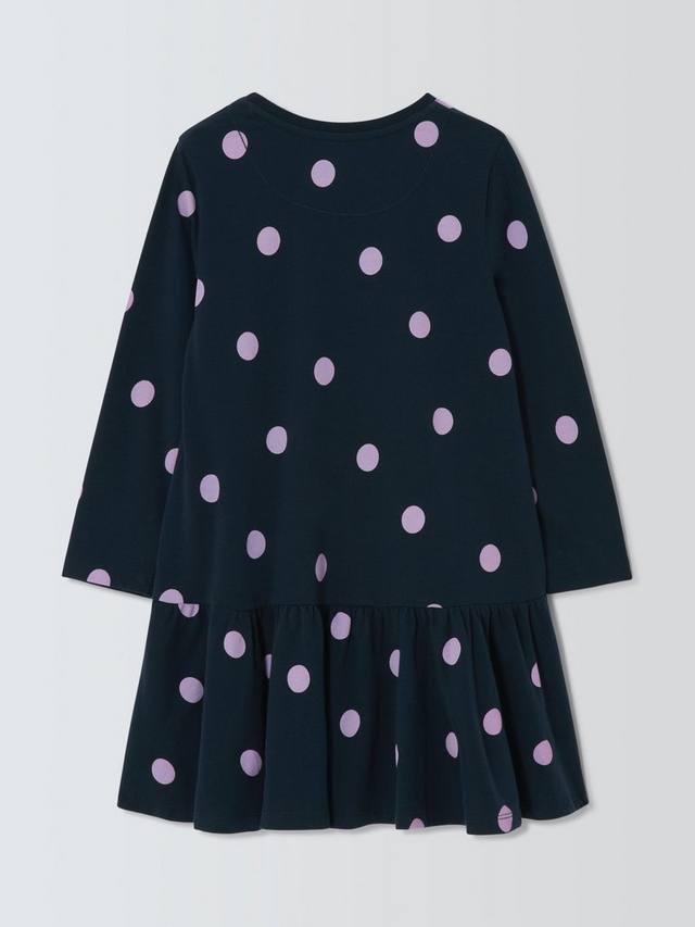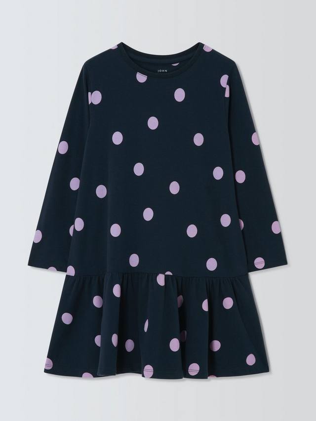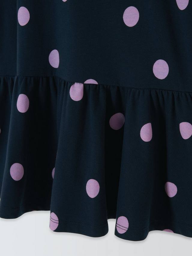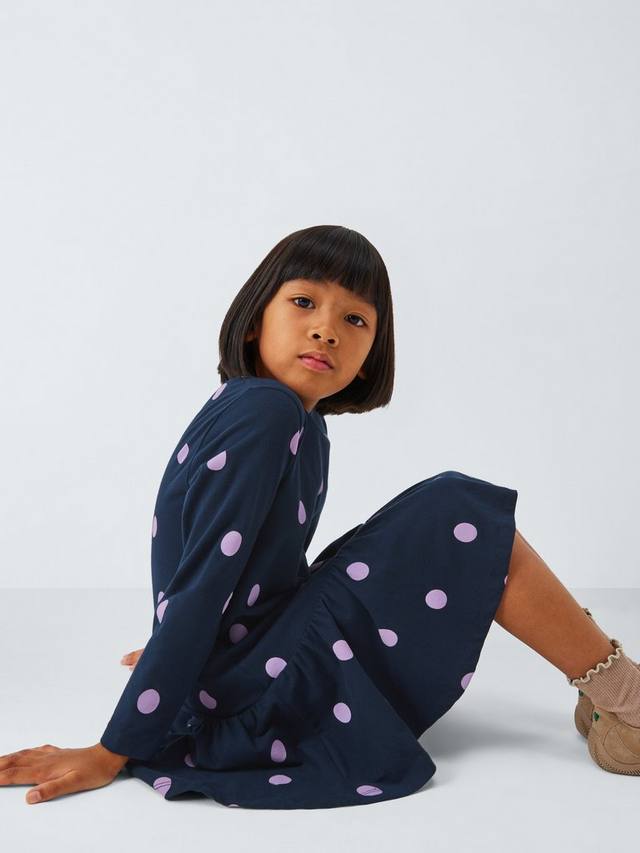 Это удобное платье в цветной горошек сшито из эластичного хлопкового трикотажа.