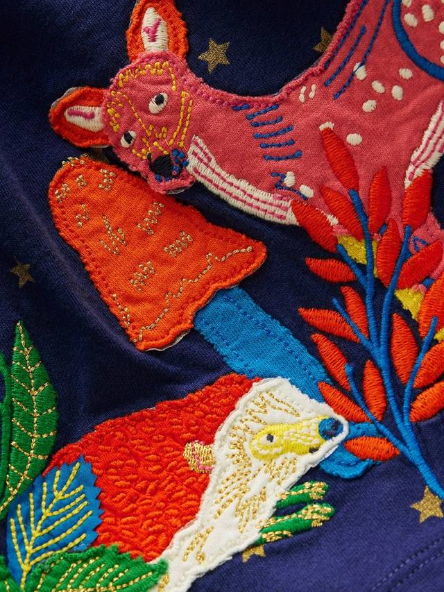 Изготовлено из мягкого хлопкового трикотажа, благодаря чему в нем будет комфортно в течение всего дня, с очаровательными лесными аппликациями, блестящими звездами и оборками.