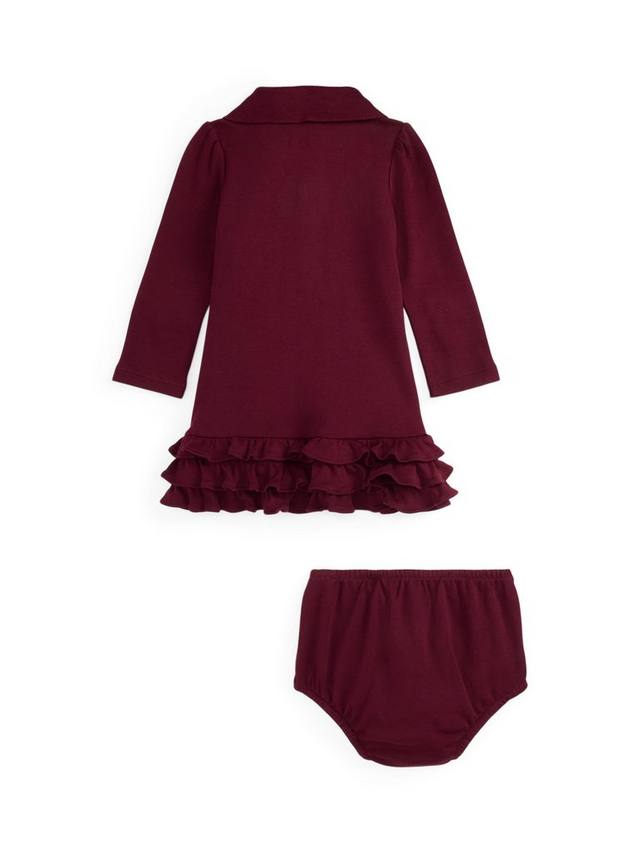 Это платье-поло выполнено из ультрамягкого хлопкового интерлока и украшено оборкой по подолу. Вышитая пони добавляет фирменный штрих. 100% хлопок. Можно стирать в стиральной машине.
