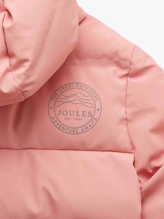 Утеплённое пальто с застёжкой-молнией по всей длине с защитой подбородка, капюшоном со светоотражающим шнуром, косыми боковыми карманами и ребристыми манжетами. Полностью водонепроницаемое, с ультразвуковой сваркой перегородок и термосварными швами. Дополнено трафаретным принтом в виде зайца Joules на груди и светоотражающим трафаретным принтом Adventure Awaits на спине.