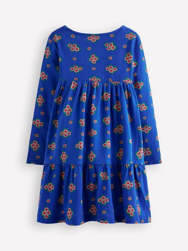 Благодаря пышной многоярусной юбке и подолу с баской, это яркое и жизнерадостное платье из хлопкового трикотажа станет идеальным выбором для танцевальных вечеринок. Длинные рукава обеспечат комфорт Мини в прохладное время года.