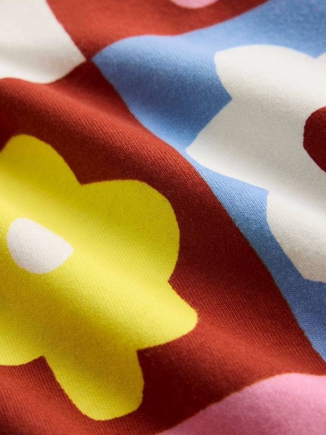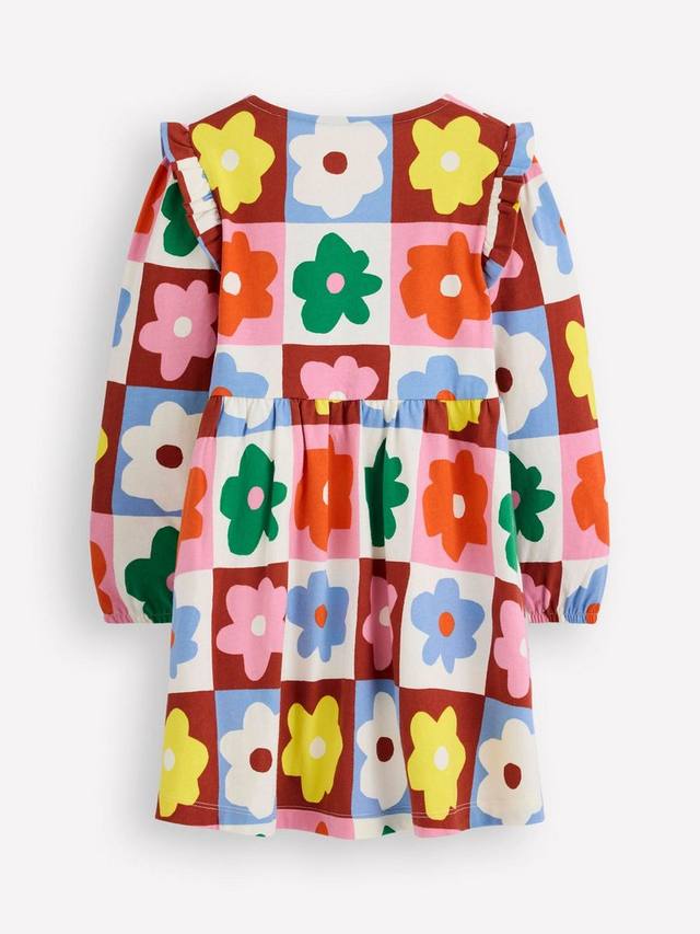 Это супермягкое трикотажное платье скоро станет вашим любимым на каждый день благодаря длинным рукавам с оборками, яркому принту и юбке, которую приятно кружить.