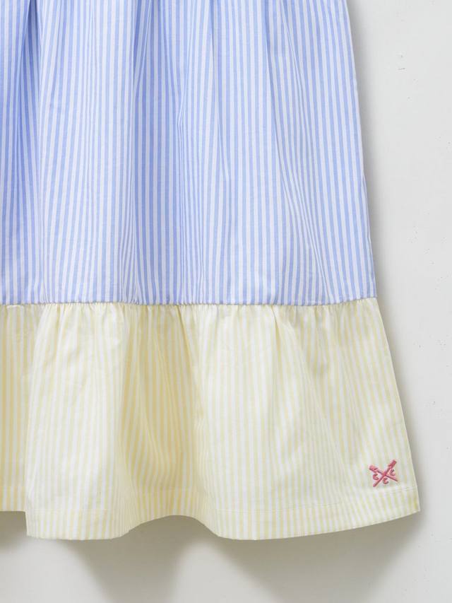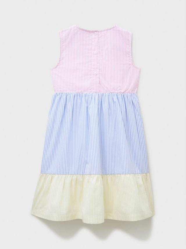 Платье без рукавов из хлопкового поплина с панелями в пастельную полоску. Это милое платье, выполненное в неизменно стильной длине миди, украшено тремя бантами, пришитыми к лифу, что придаст образу взрослой привлекательности и обязательно понравится вашей взрослой особе. Платье выполнено из гладкой, дышащей ткани и дополнено пышной юбкой для создания пышного образа.
