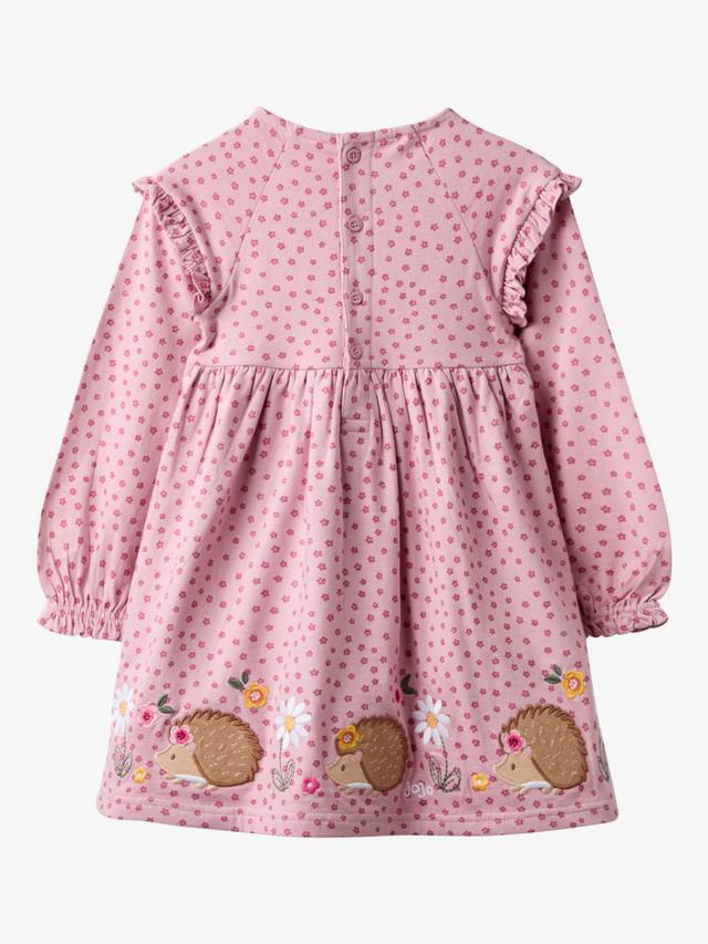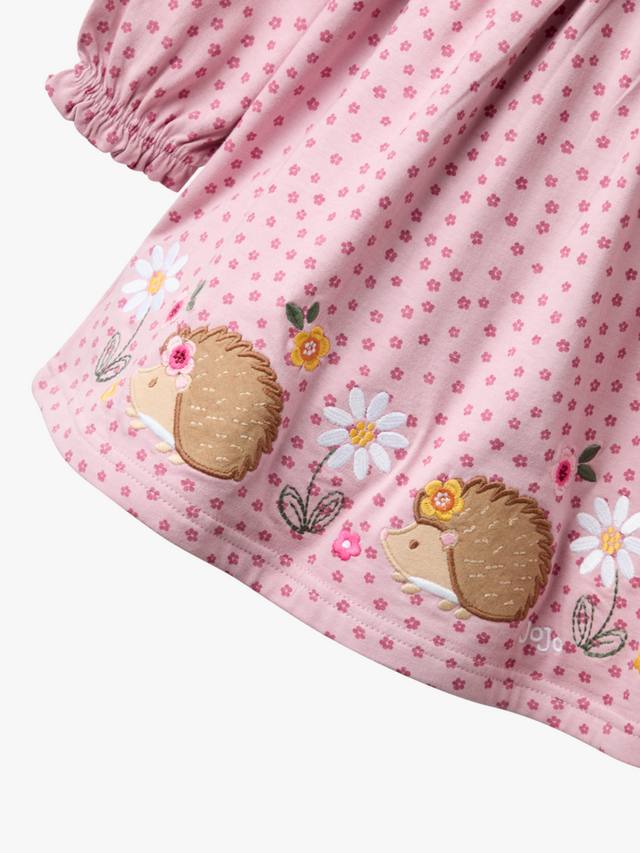 Ощутите уютный деревенский стиль в этом платье с аппликацией на рукавах с оборкой. Дополненное аппликацией в виде веселого ёжика на груди и по подолу, это уютное трикотажное платье с пуговицами сзади для удобства надевания создаст уютный деревенский стиль.