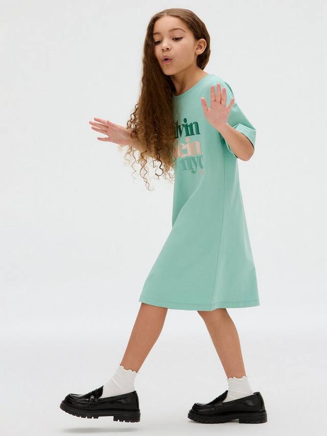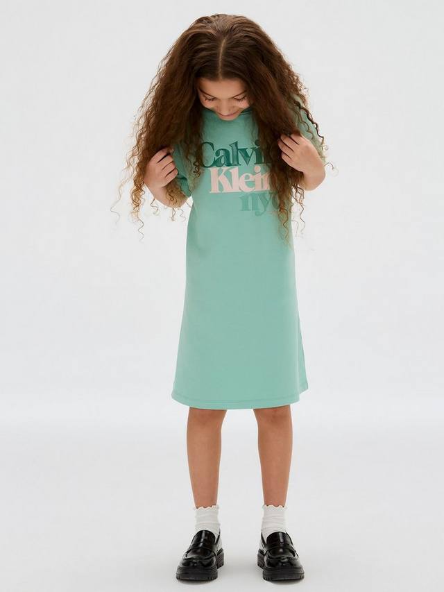 Оденьте своего малыша в это платье-футболку от Calvin Klein, выполненное из эластичного хлопка. Платье имеет круглый вырез, короткие рукава и фирменную надпись спереди.