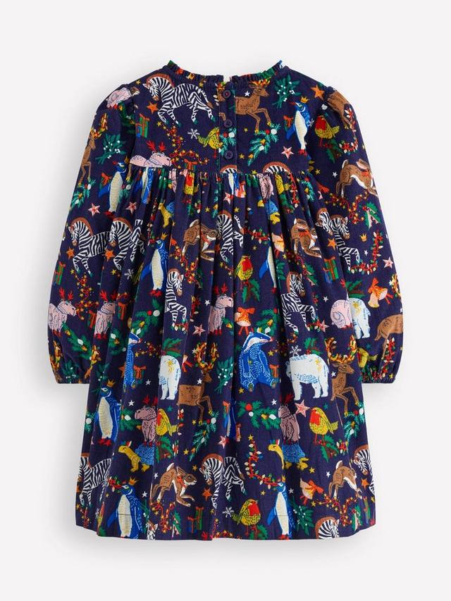 Что, если бы животные устраивали рождественские вечеринки? Или мерцающие звёздочки украшали яркий тартан? Это просторное платье с оборкой на воротнике, сотканное из мягкого хлопка, станет идеальным фоном для наших фантастических принтов. Выбрать что-то одно будет просто невозможно.