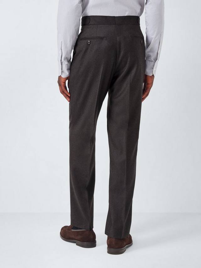 Брюки из фланелевой ткани с двумя боковыми карманами, двумя задними прорезными карманами на пуговицах и застежкой на молнию.