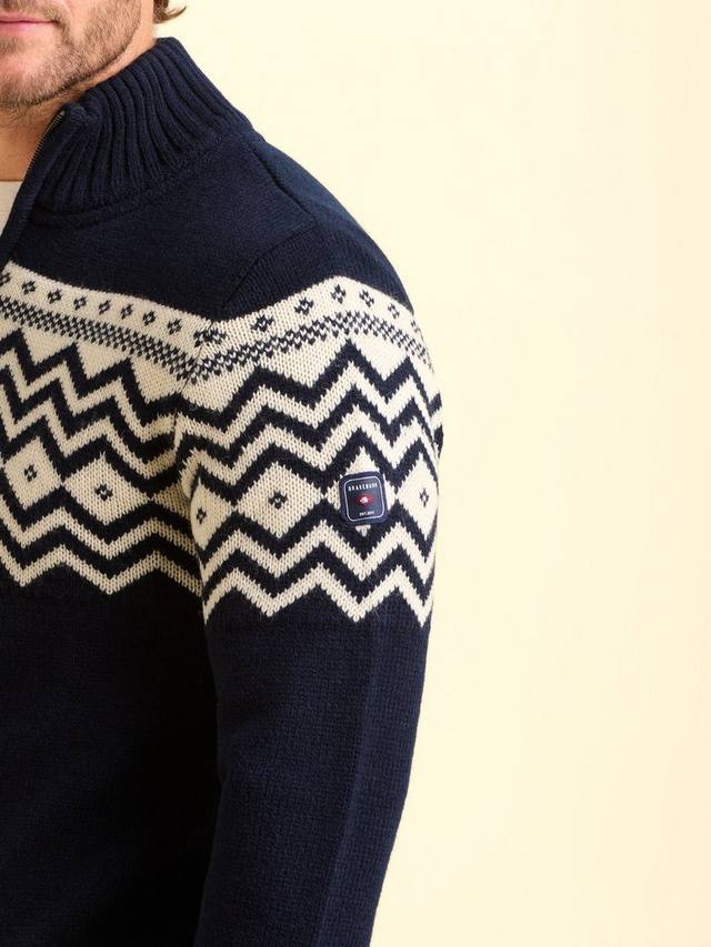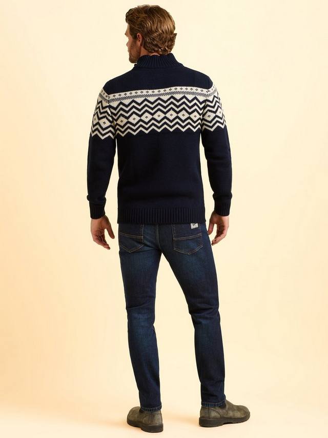 В этом объемном джемпере с узором фэр-айл тепло сочетается с индивидуальностью. Молния на вороте позволяет вам регулировать свой образ, обеспечивая комфорт и готовность к любым неожиданностям.