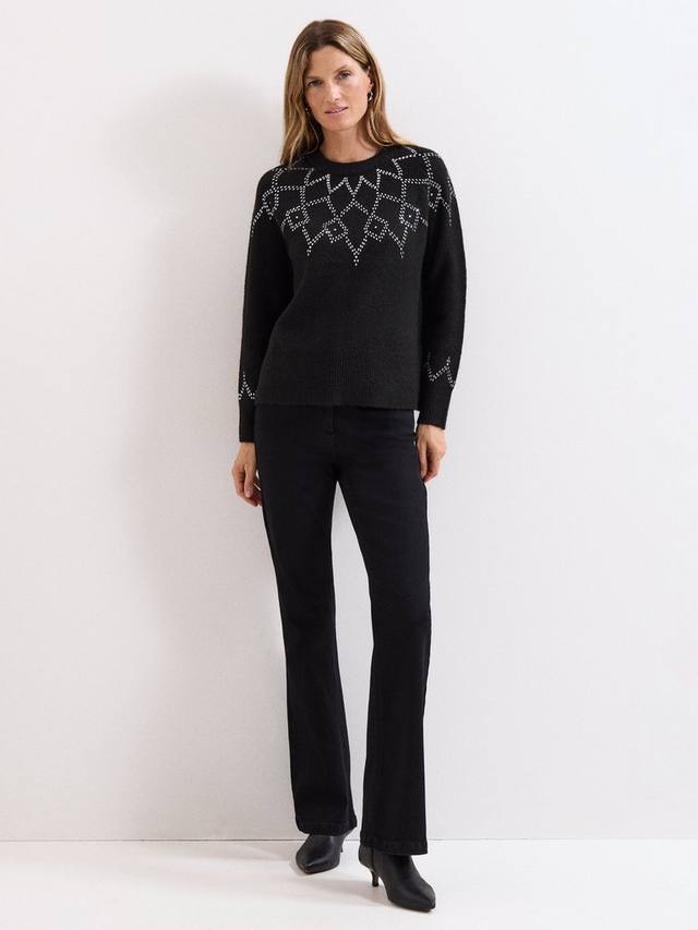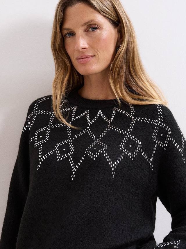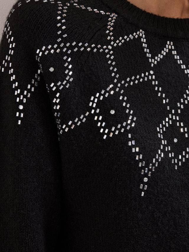 Этот мягкий трикотажный джемпер ручной вязки украшен изящной отделкой из пайеток на лифе и манжетах, что добавит женственности вашему повседневному зимнему образу. Сочетайте его с джинсами для создания непринужденного дневного образа, а с юбками или платьями – для легкого вечернего образа.