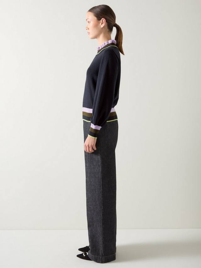 Свитер Alina украшен полосками в рубчик в стиле колор-блок. Воротник-труба дополнен оборками, доходящими до длинных рукавов. Ребристая текстура делает этот элегантный повседневный топ универсальным и подходящим для любого случая. Изготовлен из смеси тканей, которая обеспечивает комфорт и тепло в межсезонье, а изящные оборки добавляют женственности. Создайте свой стиль с Alina — сочетайте с брюками строгих кроев для работы или с любимыми джинсами для отдыха.