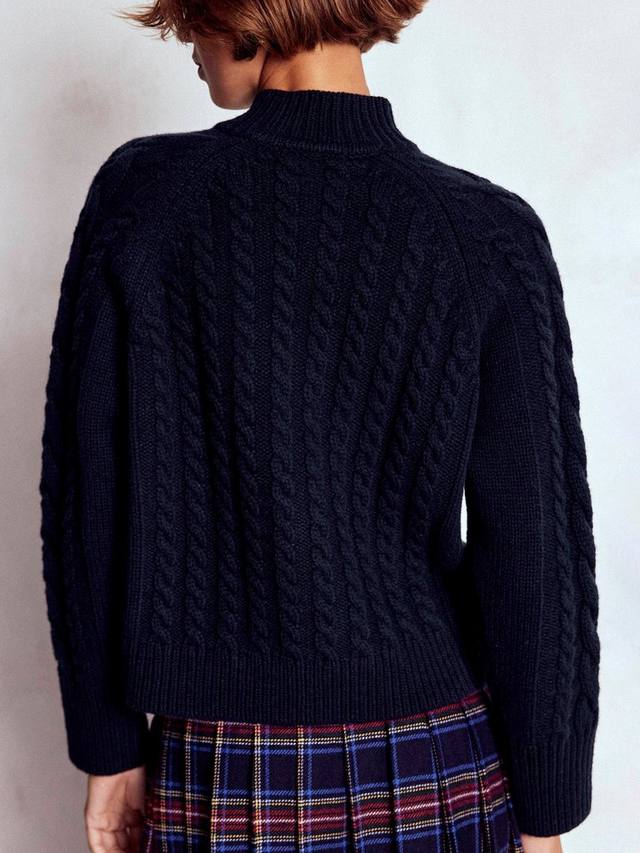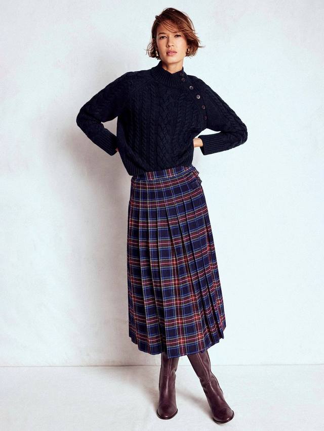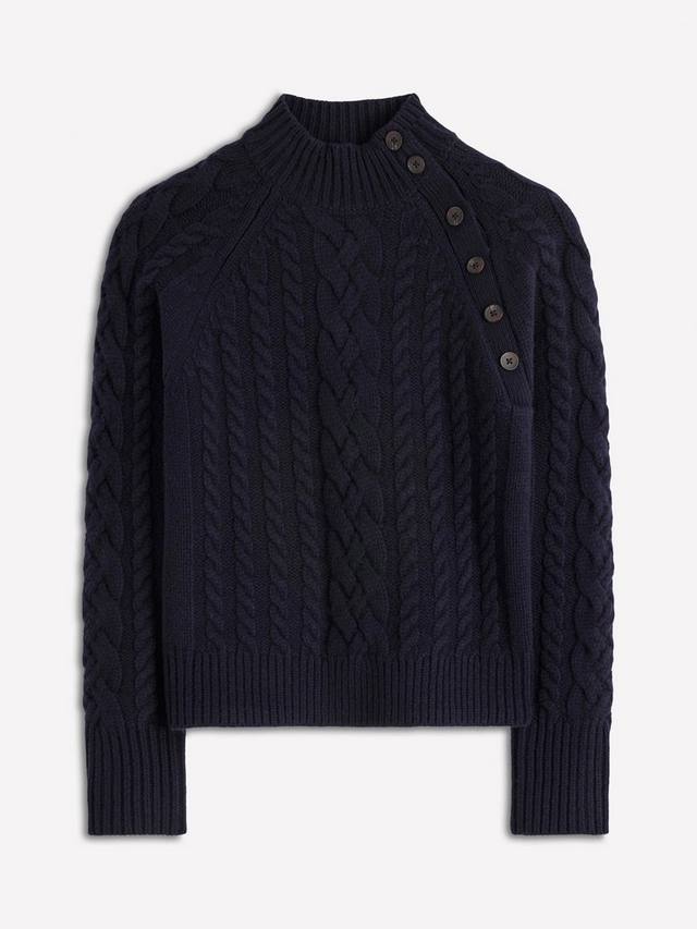 Этот джемпер крупной вязки с высоким воротом и пуговицами станет настоящим любовным посланием холодному свежему утру. Дополните его вельветовыми изделиями или килтом в клетку, чтобы создать идеальный тон для утренних кофе и ужинов в последнюю минуту.