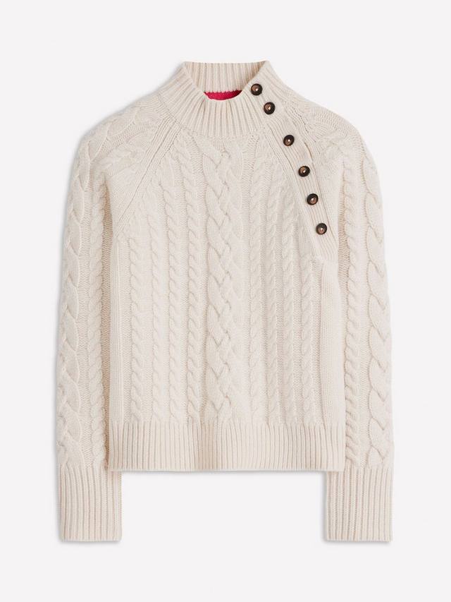 Этот джемпер крупной вязки с высоким воротом и пуговицами станет настоящим любовным посланием холодному свежему утру. Дополните его вельветовыми изделиями или килтом в клетку, чтобы создать идеальный тон для утренних кофе и ужинов в последнюю минуту.