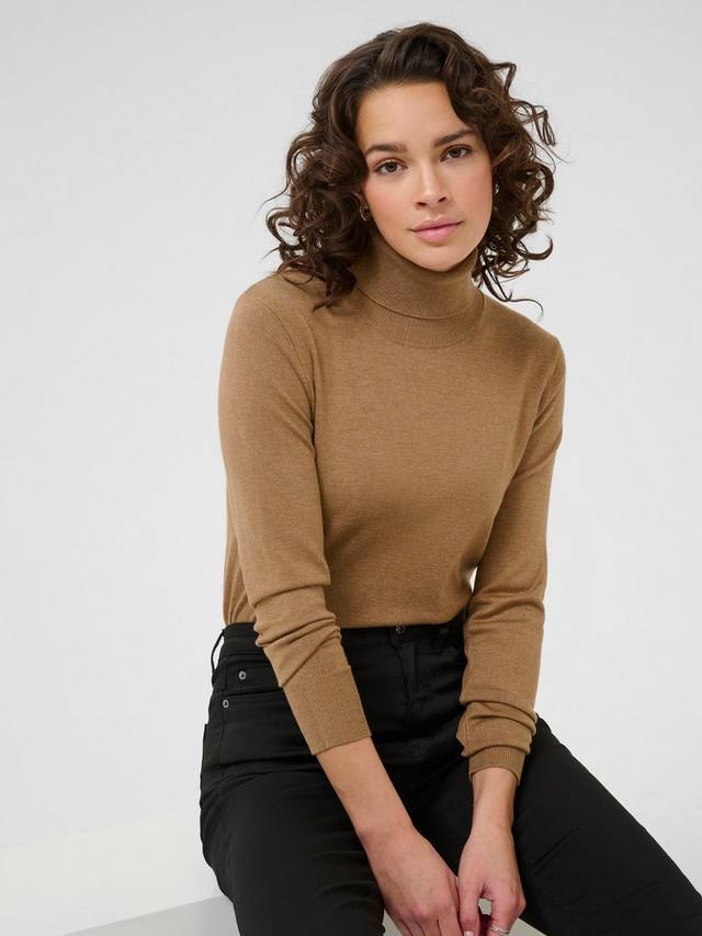 Простой в уходе джемпер стандартного кроя из мягкой тонкой пряжи с рельефным воротником и отделкой в рубчик на манжетах и подоле.