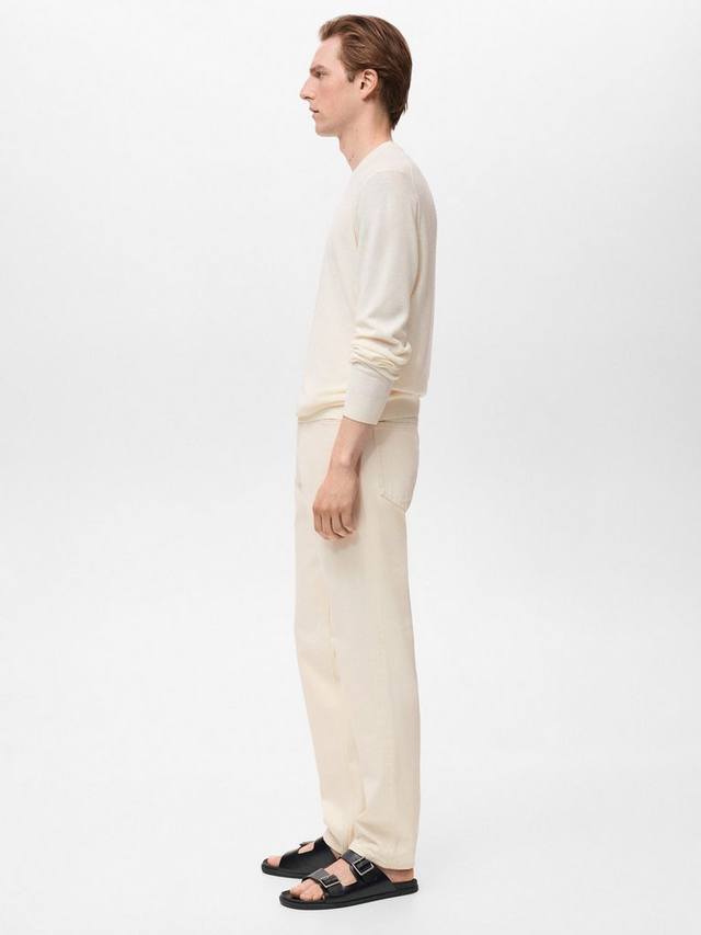 Этот элегантный и легкий трикотажный джемпер из тонкой льняной смеси обеспечит вам комфорт и прохладу в течение всего дня. Классический крой и классический круглый вырез горловины делают его универсальным, идеально подходящим для работы или отдыха с друзьями.