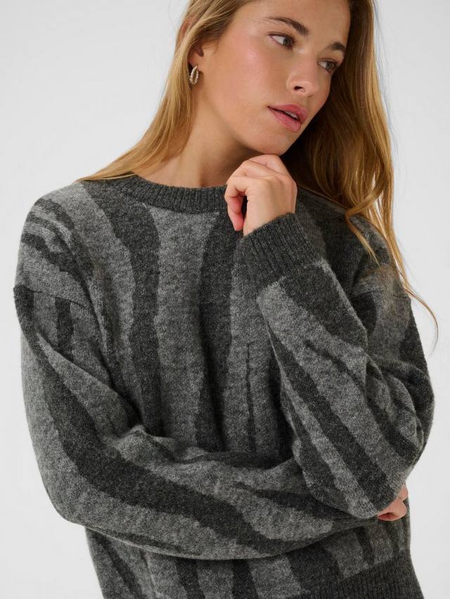 Этот вязаный свитер средней плотности с анималистичным принтом от KAFFE имеет круглый вырез горловины для простоты стиля и длинные рукава. В него добавлена шерсть для создания уюта.