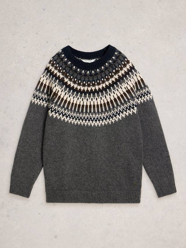 Этот свитер с узором фэр-айл обеспечит вам комфорт на весь день благодаря классическому крою, круглому вырезу и средней плотности. Идеально подходит для многослойного ношения, добавит индивидуальности любому образу, сделав каждый момент более приятным и непринужденным.
