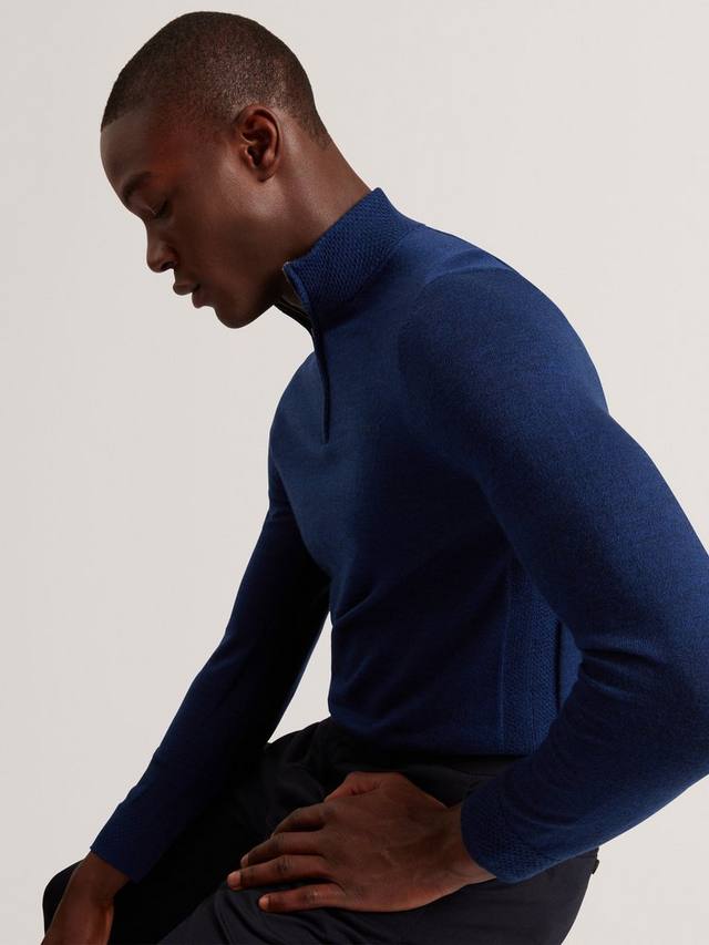 Этот джемпер от Ted Baker с уютным высоким полузастегивающимся воротом выполнен из мериносовой шерсти, что обеспечивает тепло и не создает лишнего объема.