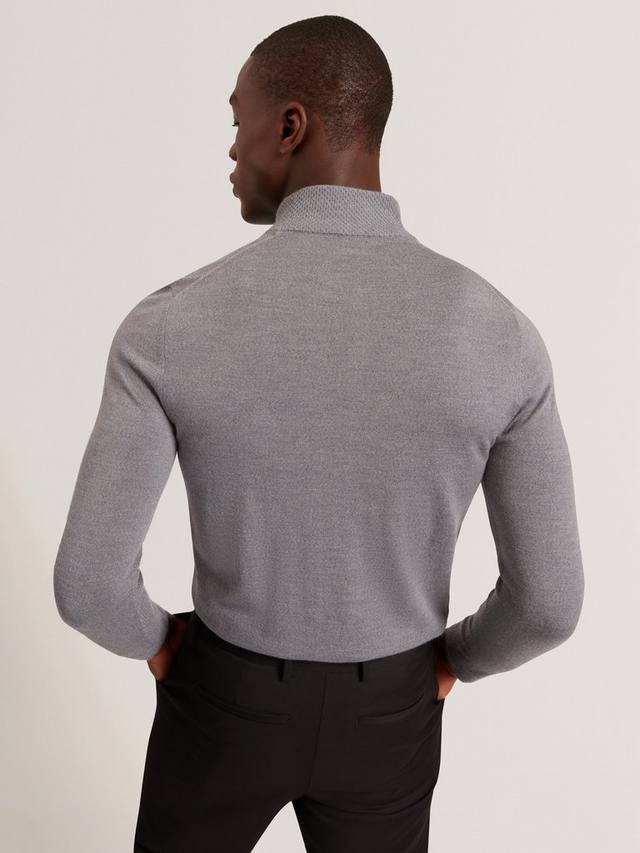 Этот джемпер от Ted Baker с уютным высоким полузастегивающимся воротом выполнен из мериносовой шерсти, что обеспечивает тепло и не создает лишнего объема.