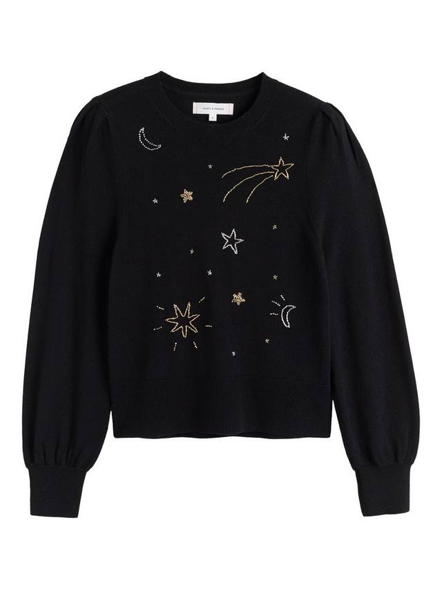 Сияйте ярко в этом сезоне в этом небесном свитере, идеально подходящем для вечеринки. Он сплетен из мягкой мериносовой шерсти и украшен изящной вышивкой в виде звезд, которая мерцает в вечернем свете.