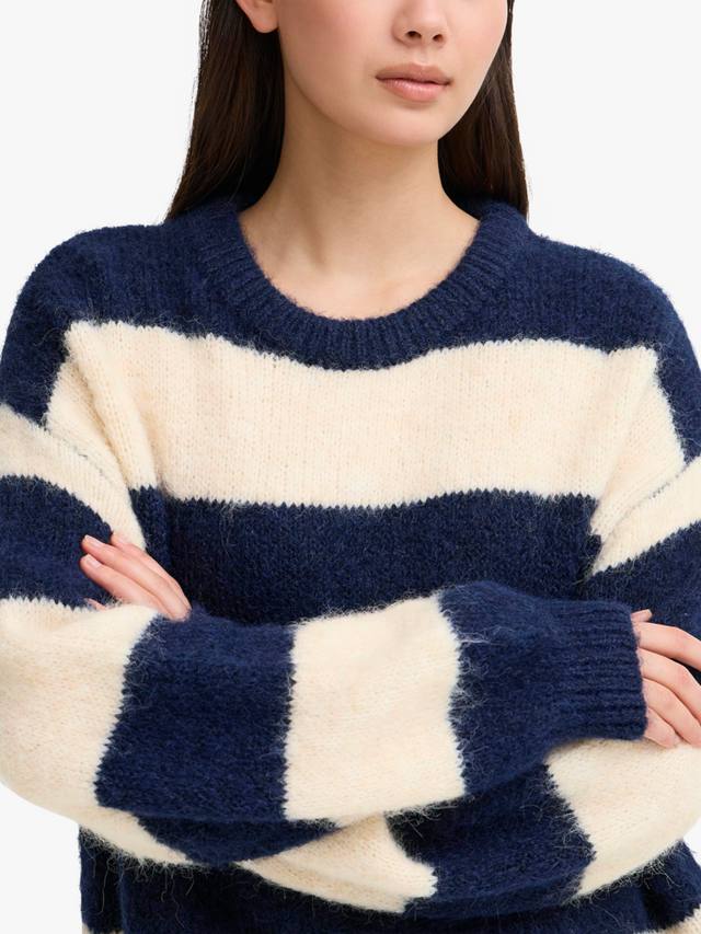 Этот полосатый джемпер средней плотности от ICHI с круглым вырезом для простоты и длинными рукавами дополнен шерстью для создания уютного образа.