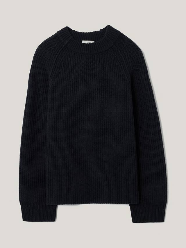 Этот свитер с круглым вырезом, выполненный из мериносовой шерсти, связан из вязки, которая никогда не теряет своей актуальности. Ребристый узор, иногда называемый полукардиганным швом, традиционно использовался на мужских свитерах для рыбалки. Компания Jigsaw переработала его, придав ему современный вид, добавив внешние швы на проймах реглана и воротнике.
