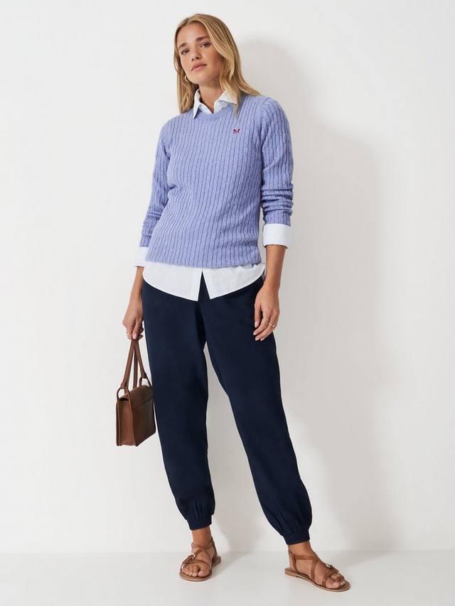 Традиционный джемпер с косичной вязкой. Изготовлен из хлопка с добавлением кашемира. Перекрученный косичный узор дополнен резинкой на манжетах и воротнике. Носите с джинсами как в будни, так и в выходные.