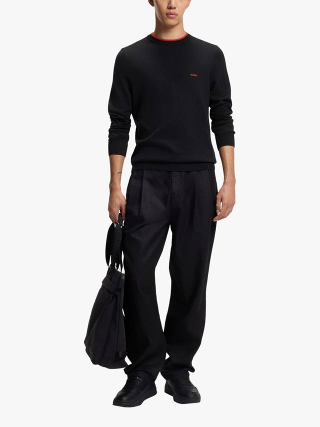 Этот джемпер с круглым вырезом от HUGO by Hugo Boss, который легко надевать в прохладную погоду, украшен культовым логотипом бренда и изготовлен из дышащего хлопка для всесезонного использования.