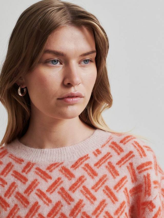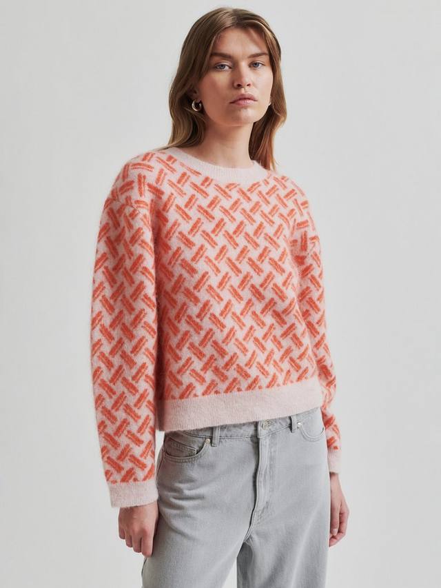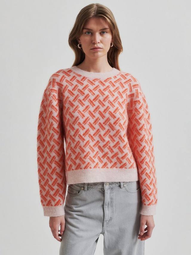 Пуловер выполнен из мягкой и эластичной смесовой альпаки, отличается пушистым качеством и сплошным вязаным узором. Контрастная ребристая отделка на горловине, манжетах и нижнем крае. Спущенная линия плеча, длинные широкие рукава. Свободный, свободный крой.