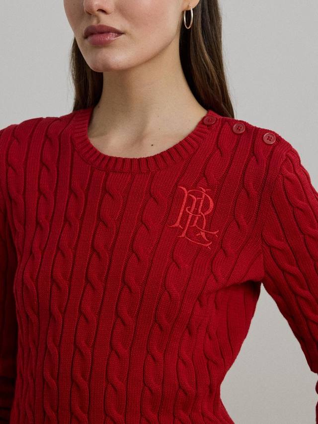 Lauren Ralph Lauren обновляет классический свитер косой вязки, добавляя фирменные пуговицы на плечи и вышитый логотип LRL на груди. Приталенный силуэт, вязаный из чесаного хлопка, обеспечивает мягкость на ощупь.