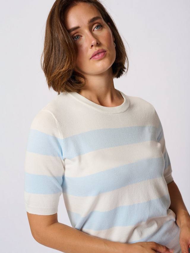 Этот полосатый джемпер от KAFFE с круглым вырезом и короткими рукавами прослужит долгое время и останется в числе ваших любимых вещей на долгие сезоны.