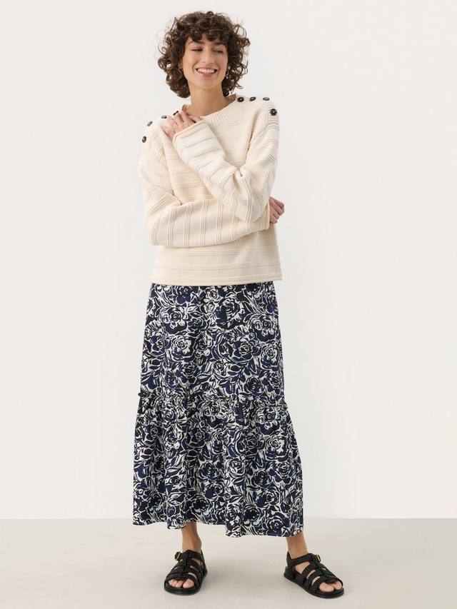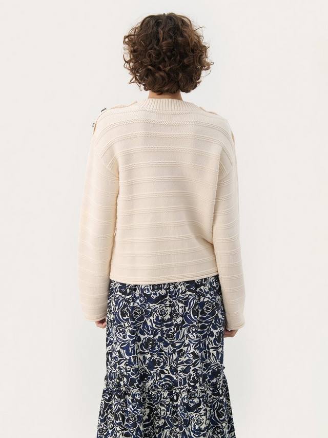 Этот свитер Noell с пуговицами на плечах добавит уникальности вашему образу. Свободный крой и тонкие горизонтальные полоски создают стильный и в то же время непринужденный образ. Идеально сочетается с джинсами или юбками для создания современного стиля.