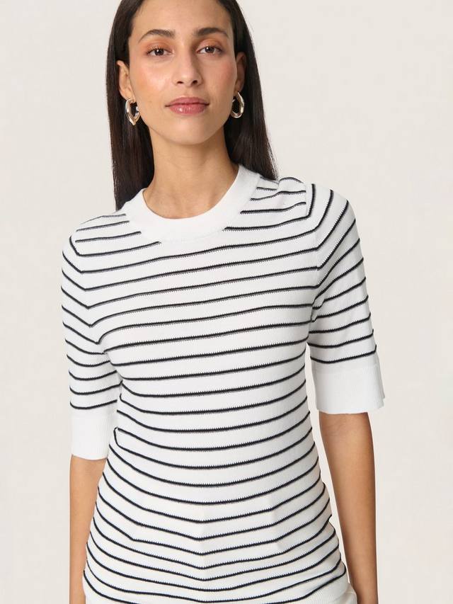 Этот джемпер от Soaked In Luxury с круглым вырезом и рукавами длиной три четверти — классика гардероба с аккуратными полосками.