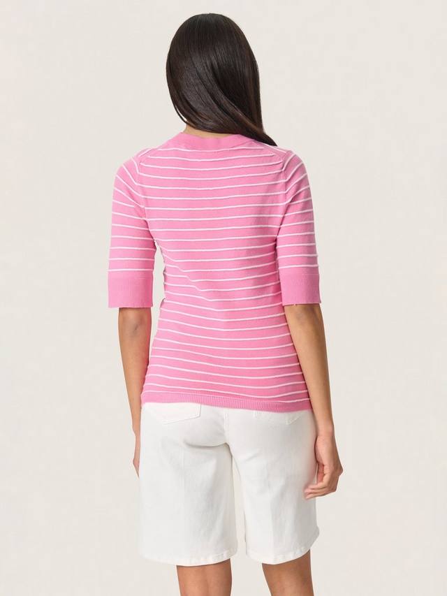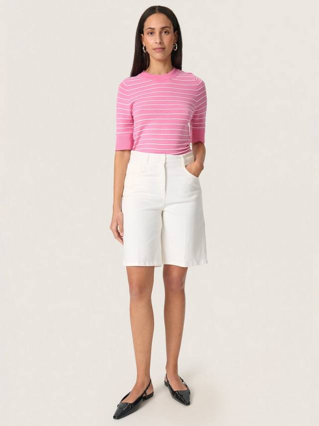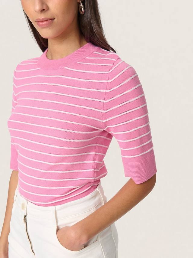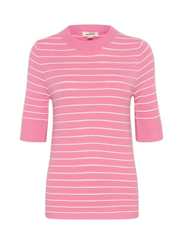 Этот джемпер средней плотности с полосатым принтом от Soaked In Luxury с непринужденным круглым вырезом и короткими рукавами легко справится с прохладной погодой.