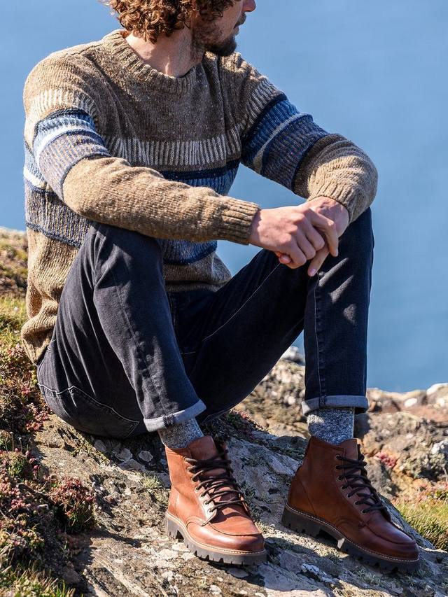 Этот шерстяной джемпер, изготовленный из настоящей пряжи Donegal, украшен фактурным узором контрастных цветов на груди и рукавах. Он выполнен в классическом стиле с круглым вырезом, а также ребристым воротником, манжетами и подолом. Его можно носить с чем угодно и любить.