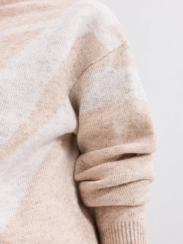 Этот вязаный джемпер из тёплой шерстяной пряжи выдержит испытание временем и станет неотъемлемой частью вашего гардероба. Среди стильных деталей – уютный высокий воротник и спущенные плечи, создающие непринуждённый, но в то же время элегантный образ. Нейтральные оттенки прекрасно сочетаются с вашими любимыми вещами, как в этом сезоне, так и в будущем.