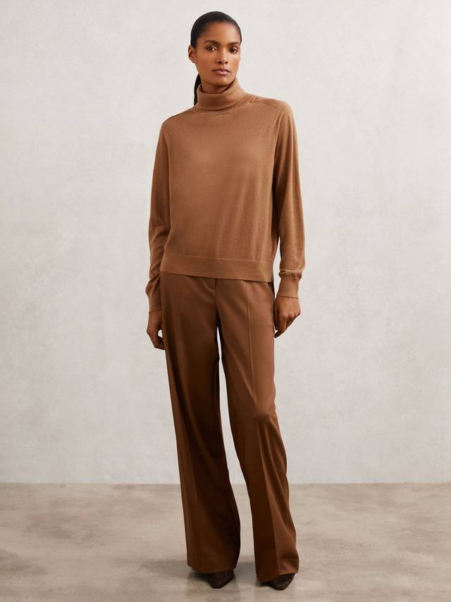 Тонкий шерстяной водолазный свитер. Он мягкий и приятный на ощупь и согревает в прохладные дни. Наслаждайтесь элегантным образом, который идеально подходит как для работы, так и для выходных.