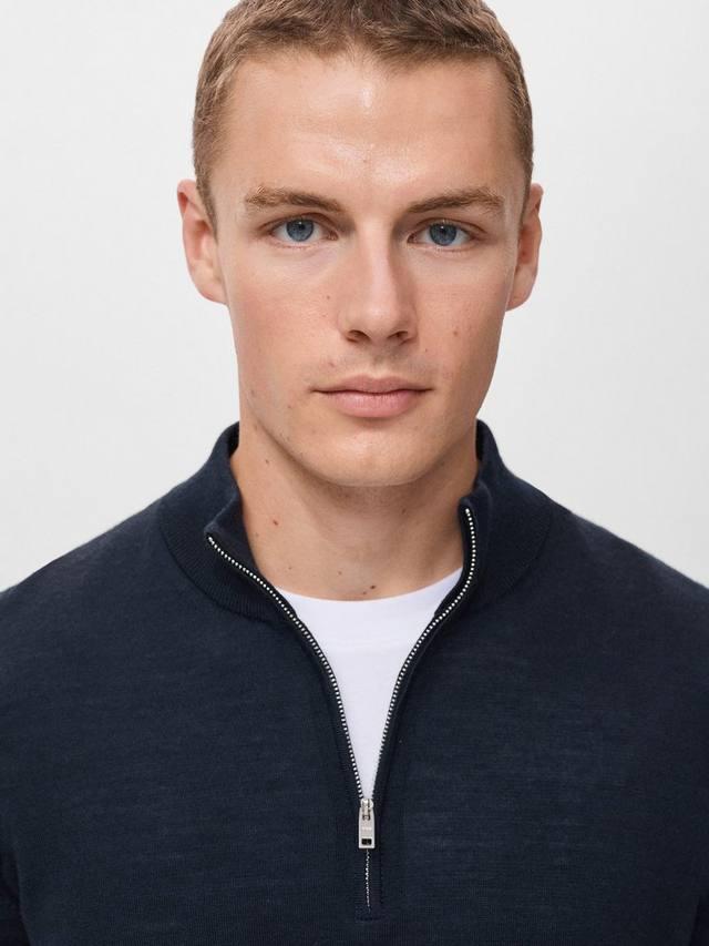 Этот свитер с застежкой-молнией из чистой мериносовой шерсти согреет вас, не создавая ощущения тяжести. Удобная посадка и гладкая поверхность делают его идеальным вариантом для многослойного ношения на работе или в дороге.
