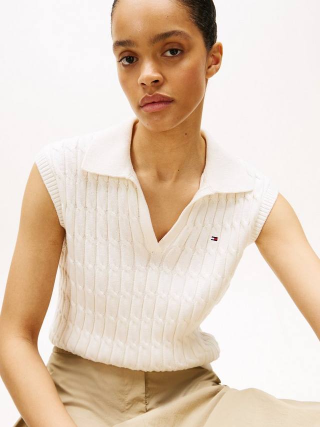 Этот джемпер с косичной вязкой от Tommy Hilfiger, дополненный удобным воротником-поло, идеально подходит для прохладной погоды из чистого хлопка.