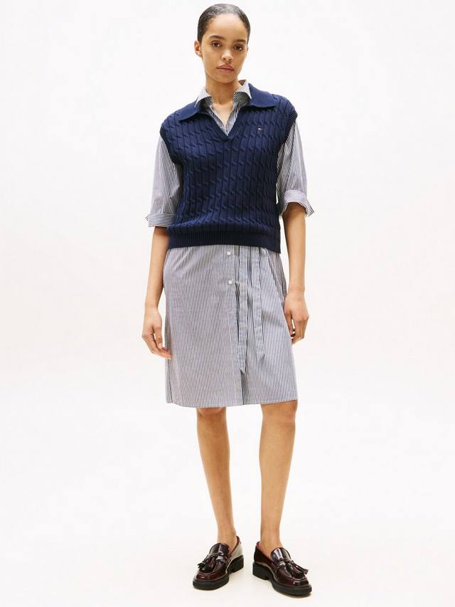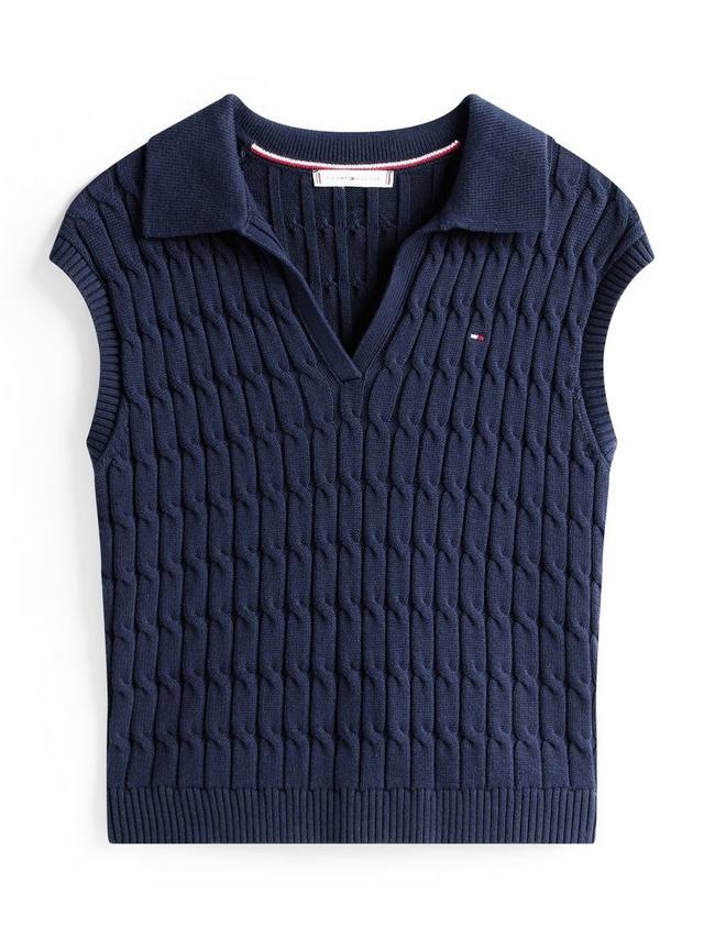 Этот джемпер с косичной вязкой от Tommy Hilfiger с удобным воротником-поло станет дышащей одеждой для прохладной погоды из чистого хлопка.