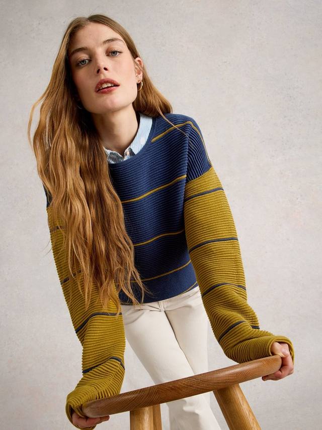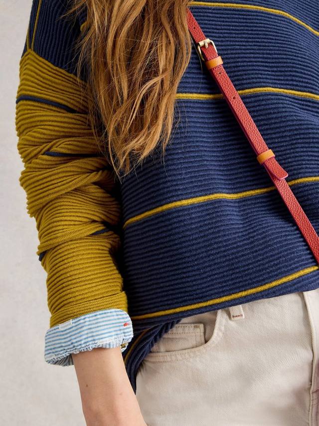 Легкий комфорт сочетается с индивидуальностью в этом тонком полосатом джемпере от White Stuff. Мягкий органический хлопок, длинные рукава и классический круглый вырез горловины делают повседневный образ невероятно простым.