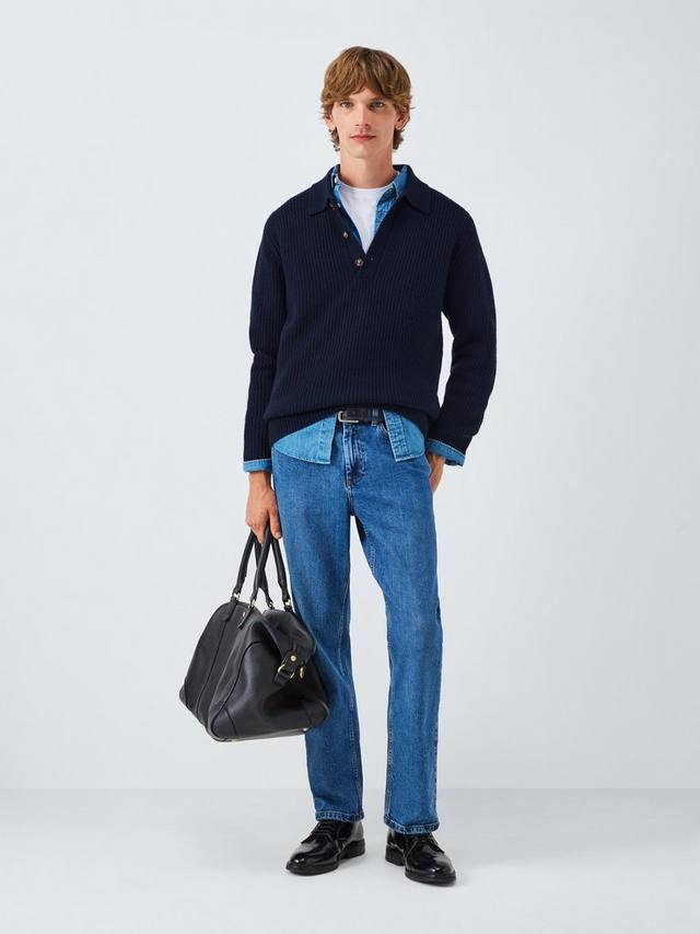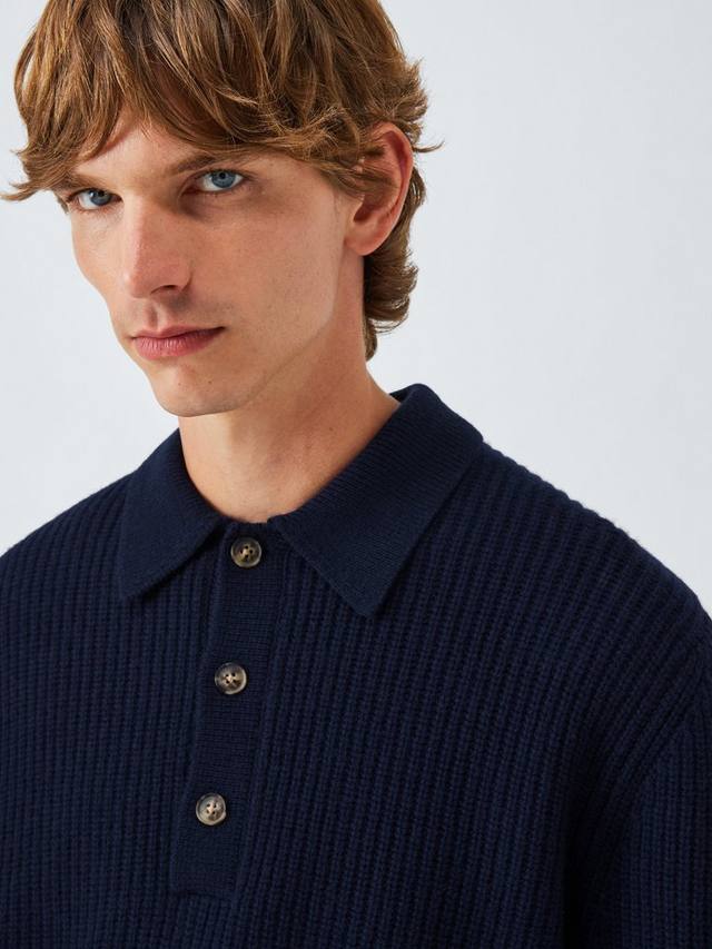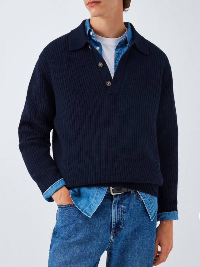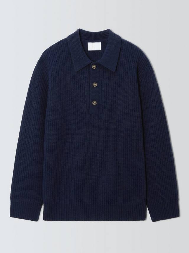 Мерино с кашемиром поло джемпер с резинкой John Lewis, Navy
