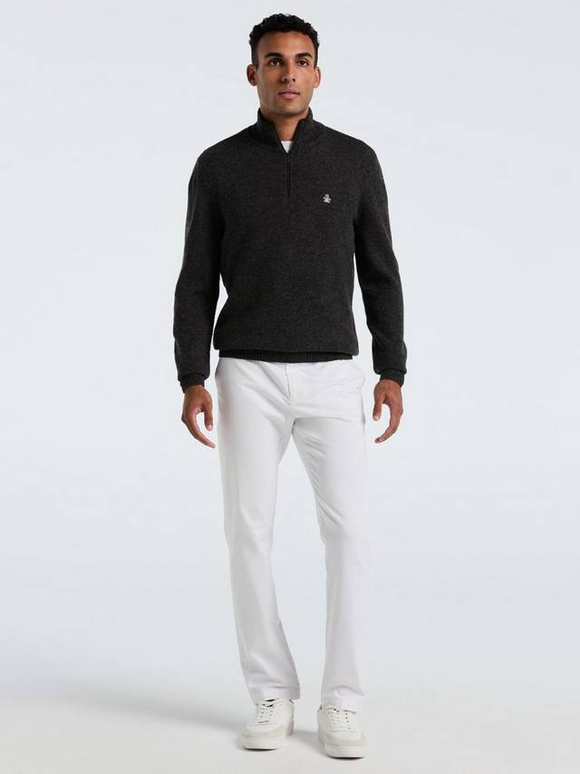 Оставайтесь в комфорте и выделяйтесь в этом свитере средней плотности с застежкой-молнией на воротнике из мягкой овечьей шерсти. Его дизайн и игривый логотип позволяют носить его где угодно, добавляя тепла и индивидуальности в ваш день.