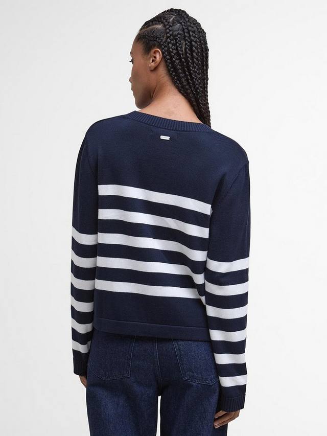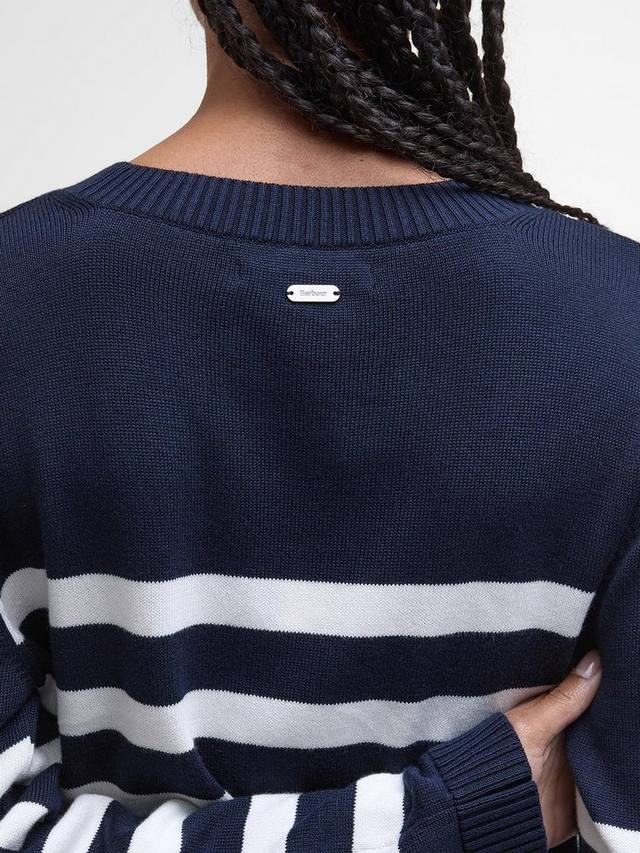 Джемпер Barbour Demi, представляющий классические принты в современной интерпретации, — настоящая находка для переходных месяцев. Этот джемпер с круглым вырезом, выполненный из хлопковой пряжи Dry Handle, идеально подходит для многослойного ношения. Хотя полосатый принт на первый взгляд может показаться смелым, он отлично сочетается с брюками строгого кроя, создавая элегантно-повседневный образ.