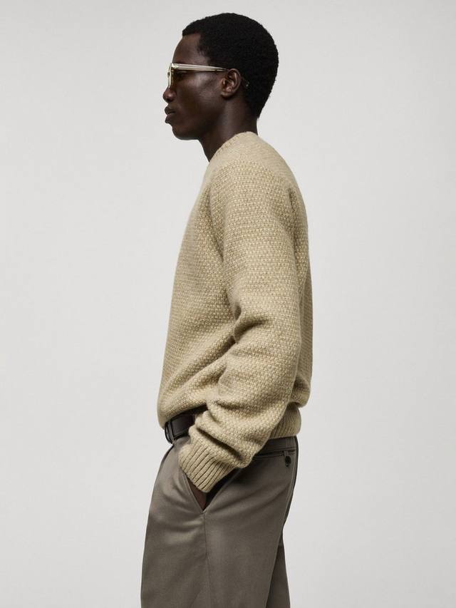 Этот джемпер от Mangois, незаменимый в прохладную погоду, связан с добавлением шерсти для дополнительного тепла и комфорта.