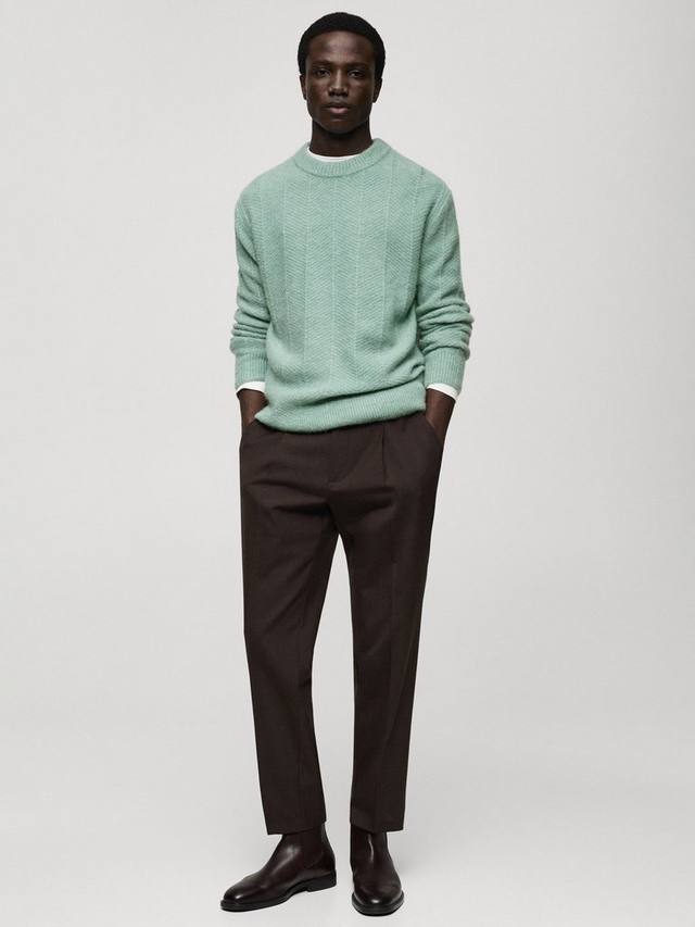 Этот джемпер от Mango, рассчитанный на прохладные месяцы, имеет классический круглый вырез и связан с добавлением шерсти для дополнительного тепла.