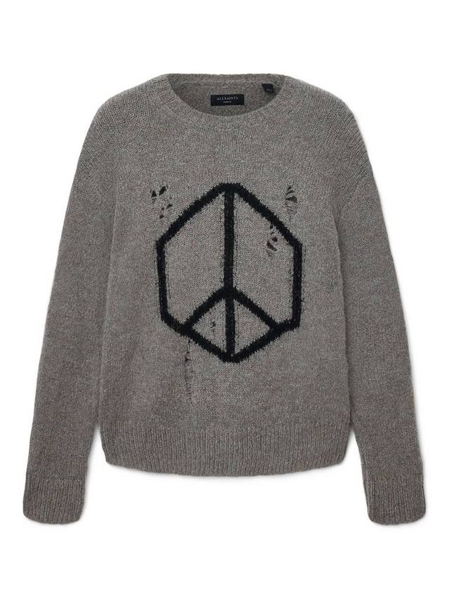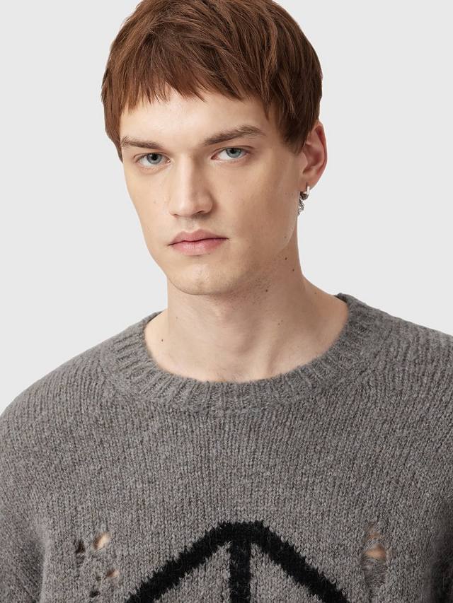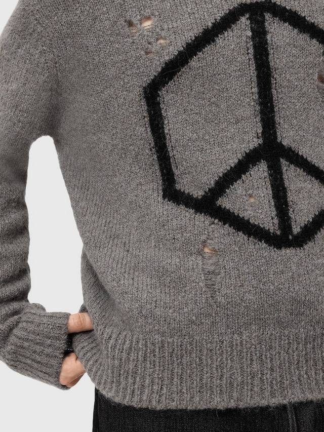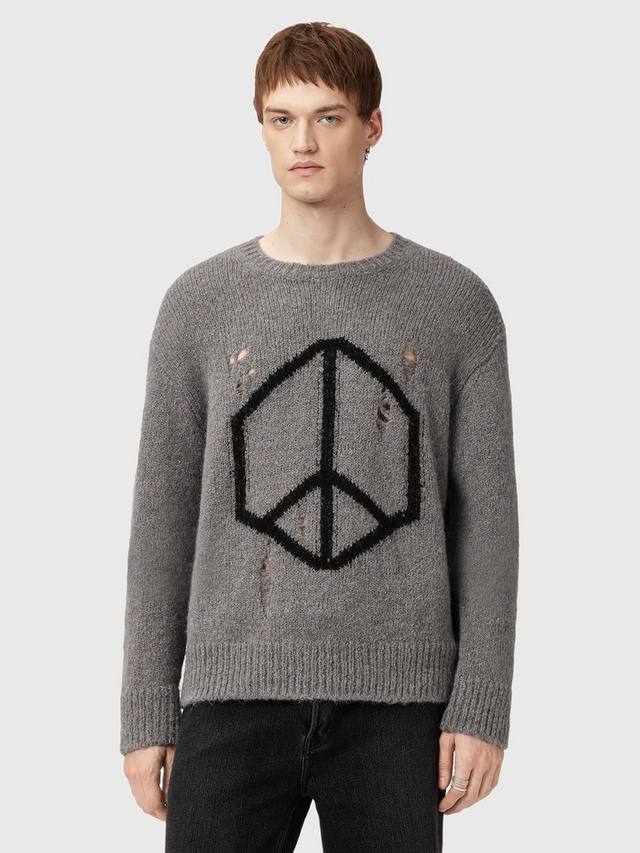 Этот потертый свитер с круглым вырезом подарит тепло и комфорт в каждый день благодаря принту Мир. Классический крой и средняя плотность позволяют носить его в сочетании с другими вещами, а шерстяная смесь обеспечит комфорт в течение всего дня.